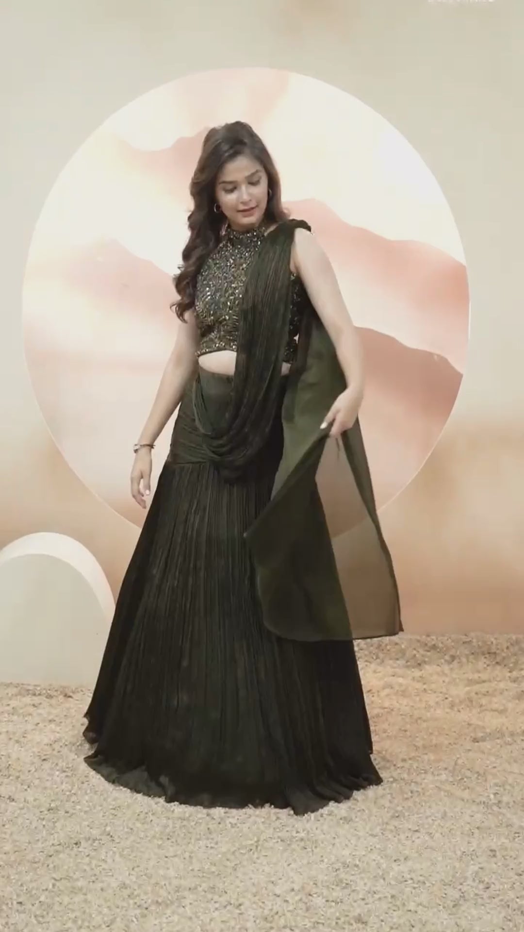 Olive Green Floral Lehenga Choli Set for Girls  Mokshaa