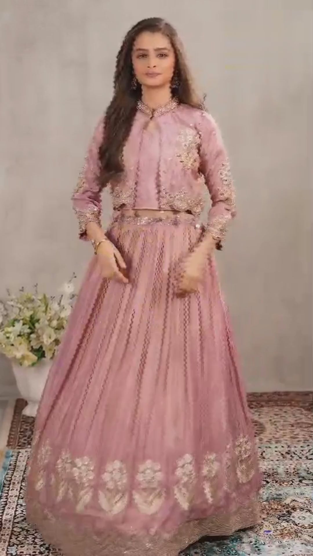 Dusty Pink Jacket Style Lehenga Set with Embroidery