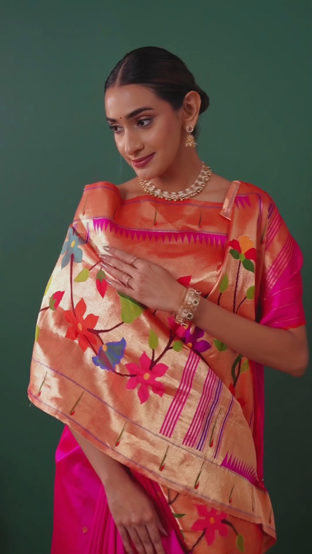 Let tradition shine with this pink and orange Paithani saree—crafted for those who celebrate culture and color in every special moment.